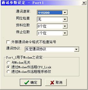 Port1設(shè)置為調(diào)制解調(diào)器專用界面,在該界面下PLC會(huì)啟用“MODEM驅(qū)動(dòng)程序”,此時(shí),雖CPU仍然使用永宏〝標(biāo)準(zhǔn)通訊驅(qū)動(dòng)程序〞來管理Port1