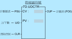 CV:上/下數(shù)計(jì)數(shù)器之計(jì)數(shù)值(現(xiàn)在值)緩存器號(hào)碼。 PV:計(jì)數(shù)器之設(shè)定值或其緩存器號(hào)碼。 |