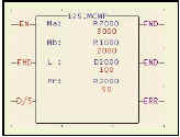 FBs-PLC最多可有4組硬件高速計數(shù)器(HHSC)及4組軟件高速計數(shù)器(SHSC),HHSC最高計數(shù)頻率為120 KHz (MC)或920 KHz (MN),并具清除、遮沒等功能。計數(shù)模式共有U/D、U/D x 2、K/R、K/R x2、A/B、A/B x 2、A/B x 3、A/B x 4 等8種,功能超強、效益最高。例如每轉(zhuǎn)200 pulse之Encoder若使用A/B x 4模式,將可提升到等同每轉(zhuǎn)800 pulse Encoder之控制效果。且其系由硬件執(zhí)行,故不占用CPU時間。4組SHSC則有U/D、K/R、A/B三種計數(shù)模式,總和計數(shù)頻率為10 KHz。