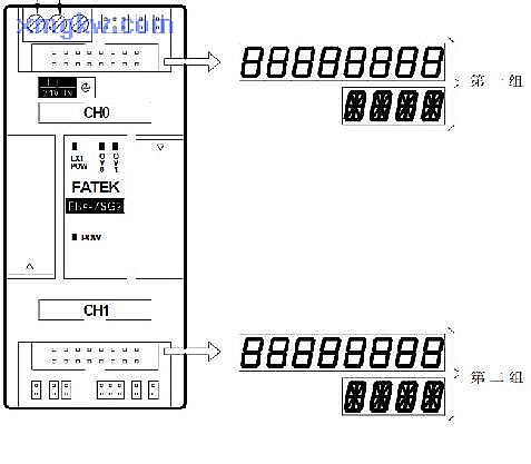 這里顯示模塊使用FBs-7SG2.共有2個通道,一個通道顯示8位7段LED。我們對顯示模塊采用譯碼碼模式。LED顯示單元為了配合程序更好設(shè)計(jì)。我們這樣編排: