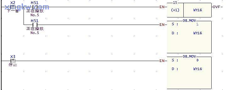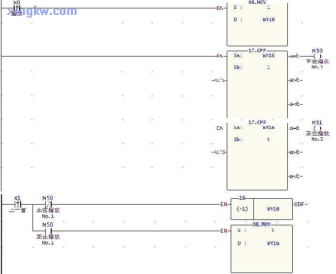 2. [上一首 ]和[下一首]的控制,只需要對(duì) WY16的值作“減 1”和“加 1”運(yùn)算即可,而循環(huán)播放則只需要作比較判斷,再作設(shè)定即可。