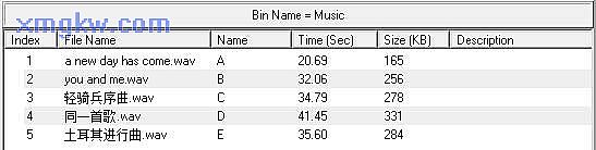 Bin):為了方便語(yǔ)音存取管理,設(shè)定分類右鍵點(diǎn)擊【 TEST】,出現(xiàn)【 Create Bin】,本例中更改名稱為【 Music】,即建立了一個(gè)分類;