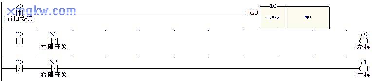 【控制要求】黑板清掃臂有左移和右移兩種動作,按一下清掃按鈕,可在左移和右移兩種動作之間切換。清掃臂移至黑板左極限或右極限時(shí),清掃臂將停止動作,直至再次按下清掃按鈕才會向上次移動方向的反方向移動。