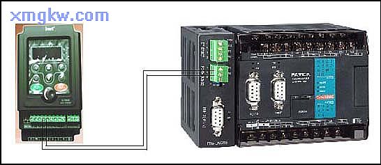 【接線示意圖】 本例中,PLC的Port4通訊口( RS-485接口)與變頻器連接: