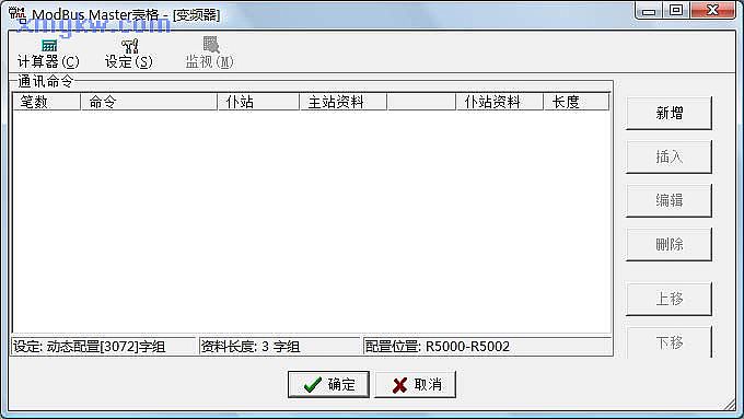 點(diǎn)擊“確定”后,進(jìn)入以下通訊命令表格: