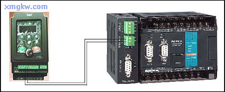 【接線示意圖】 此例中, PLC的Port4通訊口( RS-485接口)與變頻器連接: