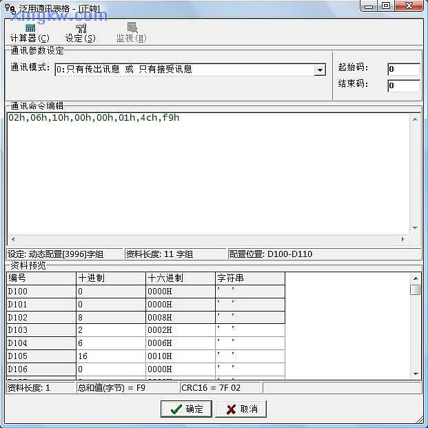 每一筆通訊命令,只需要按照通訊協(xié)議填寫即可,其中總和值和 CRC16值可以在泛用通訊表格的狀態(tài)欄處顯示,方便使用者計(jì)算校驗(yàn)和。