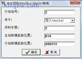 M1=On時(shí),第二個(gè) FUN150.M-BUS指令被執(zhí)行,將 D10、D11 的內(nèi)容分別寫入 H10F、H110內(nèi)。地址映射規(guī)則:將十六進(jìn)制的仆站地址,先轉(zhuǎn)換為十進(jìn)制,再加上 400001。