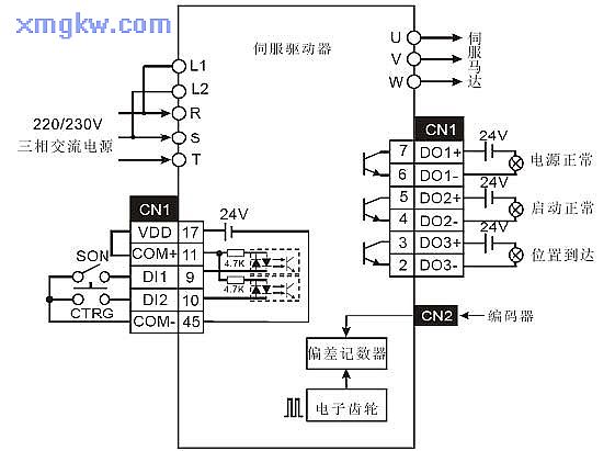 將伺服驅(qū)動(dòng)器的參數(shù)設(shè)置完后,重新上電,若無異?,F(xiàn)象, “電源正常 ”指示燈(DO1)會(huì)ON。