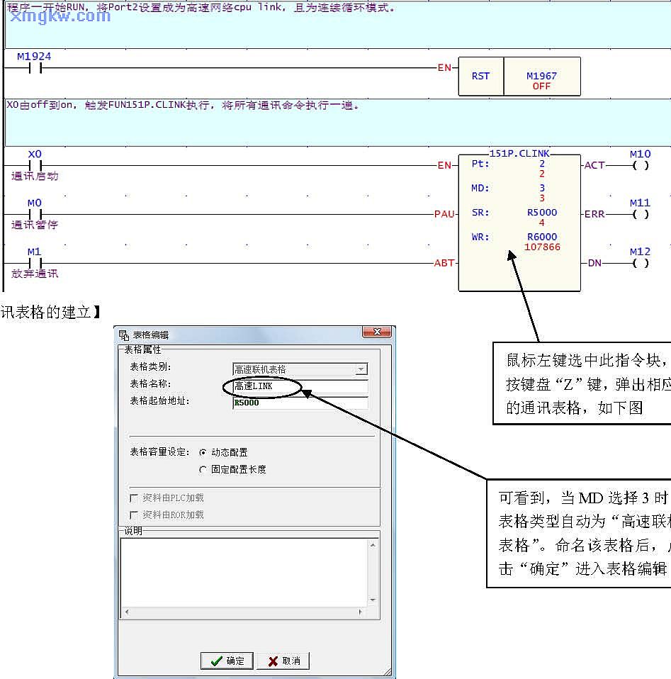 鼠標(biāo)左鍵選中此指令塊,按鍵盤“Z”鍵,彈出相應(yīng)的通訊表格,如下圖