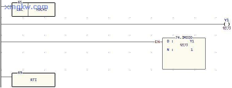- SHSC4計數(shù)達到 1000時(即傳送帶滾軸轉(zhuǎn)動 1000轉(zhuǎn)),以中斷的方式立即將 Y1的狀態(tài)輸出到外部輸出端,使切刀下切。