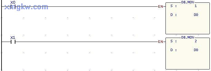 A 產(chǎn)品進入傳送帶時, X0由OFF→ON變化一次, [ MOV 1 D0 ]指令執(zhí)行, D0=1,當(dāng)B~C產(chǎn)品進入傳送帶時, D0對應(yīng)的值分別變?yōu)?2、3。