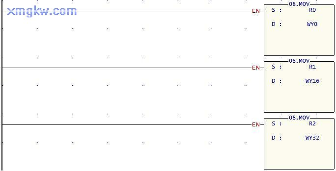 本例中利用指針緩存器來(lái)實(shí)現(xiàn)將單一值裝入一個(gè)緩存堆棧(連續(xù) R區(qū)域),用戶可以根據(jù)自己需要來(lái)使用這個(gè)區(qū)域的數(shù)據(jù),比如用于定時(shí)器,計(jì)數(shù)器等方面的控制。