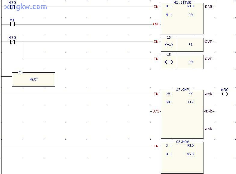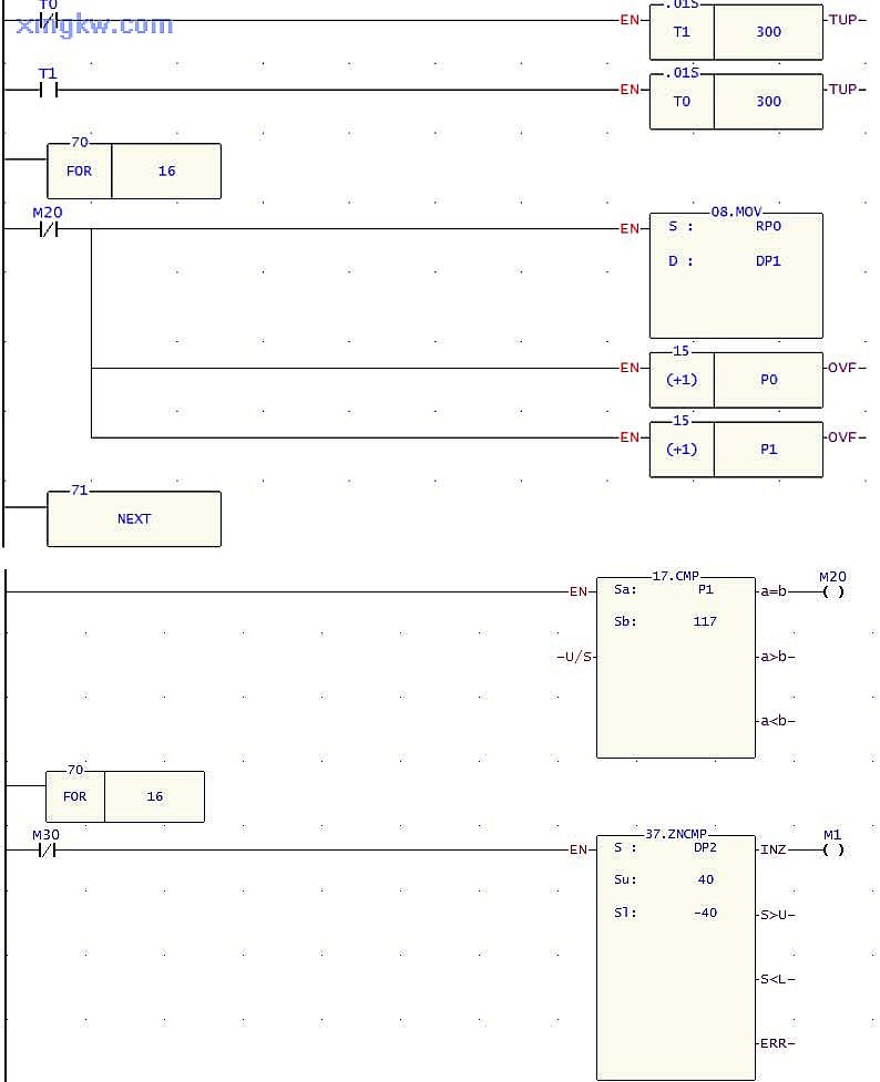【控制要求】 FBS-40MA + FBs-TC16,偵測(cè)外部 16路溫度 , 每隔3秒將新溫度數(shù)據(jù)放入 D101-D116;當(dāng)溫度超過(guò) 40℃或小于- 40℃時(shí),正常指示燈滅。