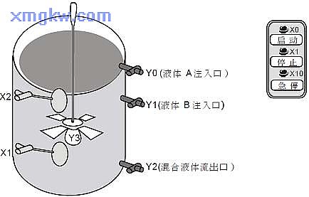 1. 按下 START按鈕后,自動依序向容器注入 A、B 兩種液體,到達規(guī)定的注入量后,攪拌機自動對混合液體進行攪拌 2分鐘,攪拌均勻后打開閥門讓混合液體從流出口流出。