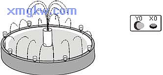在噴泉工作指示燈亮 2秒后,循環(huán)執(zhí)行下面動作:中央噴水燈 →中央噴水閥 →環(huán)狀燈 →環(huán)狀噴水閥,