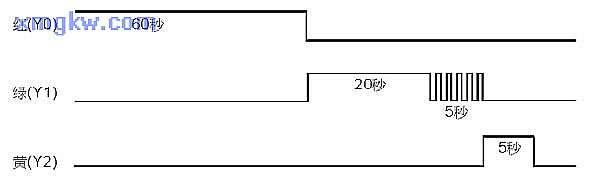 東西方向流程處于紅燈狀態(tài)時,南北方向流程應(yīng)相應(yīng)的處在綠燈,綠燈閃爍,黃燈流程。