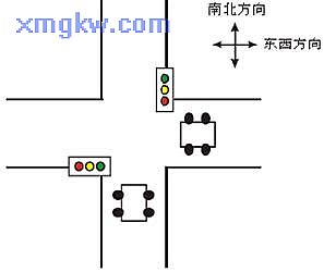 設(shè)東西方西車流量較小,紅燈亮的時間為 60秒,而南北方向車流量較大,紅燈亮的時間為 30秒。