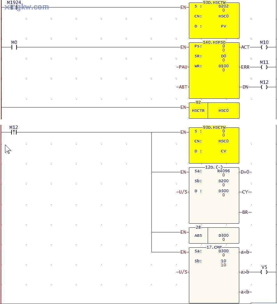 【控制要求】 FBs-MC系列高數(shù)計數(shù)及高速脈沖輸出頻率最高可達 200KHz,而FBs-MN系列的最高可達 920KHz,現(xiàn)以AB相脈沖為例進行說明 :